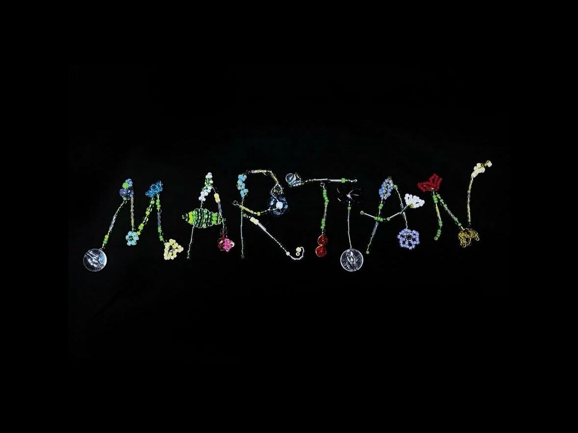 【mosaic flower】 •purple 全長:42.5cm 素材:アクリルビーズ、真鍮、合金 •yellow&star 全長:42cm 素材:アクリルビーズ、真鍮、合金