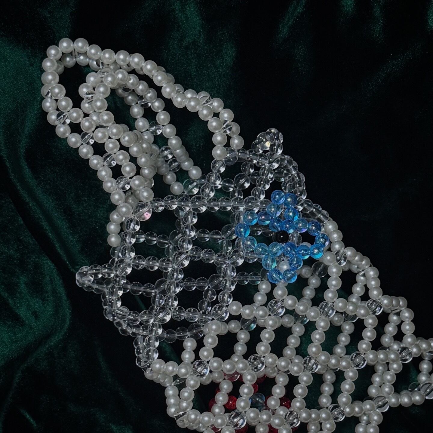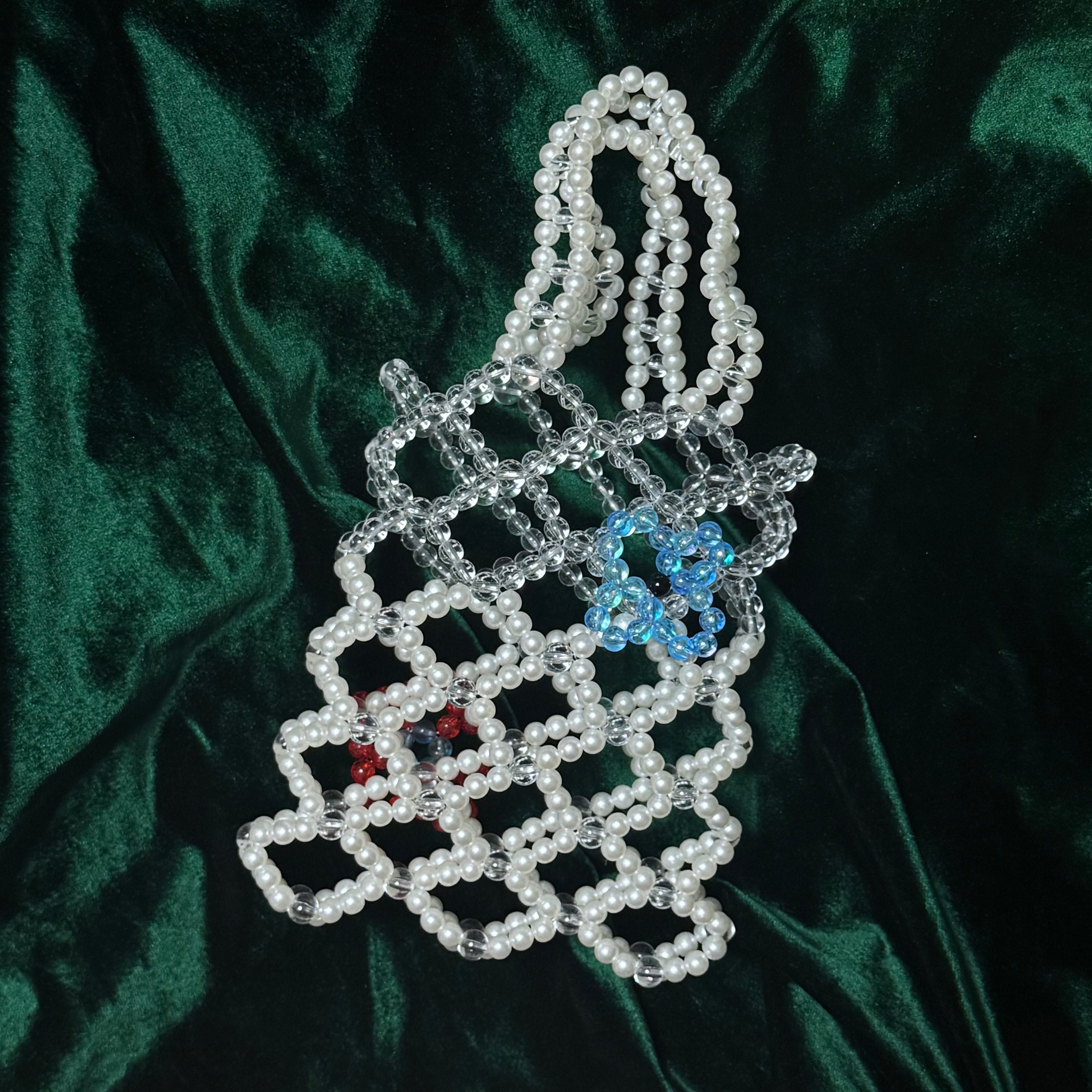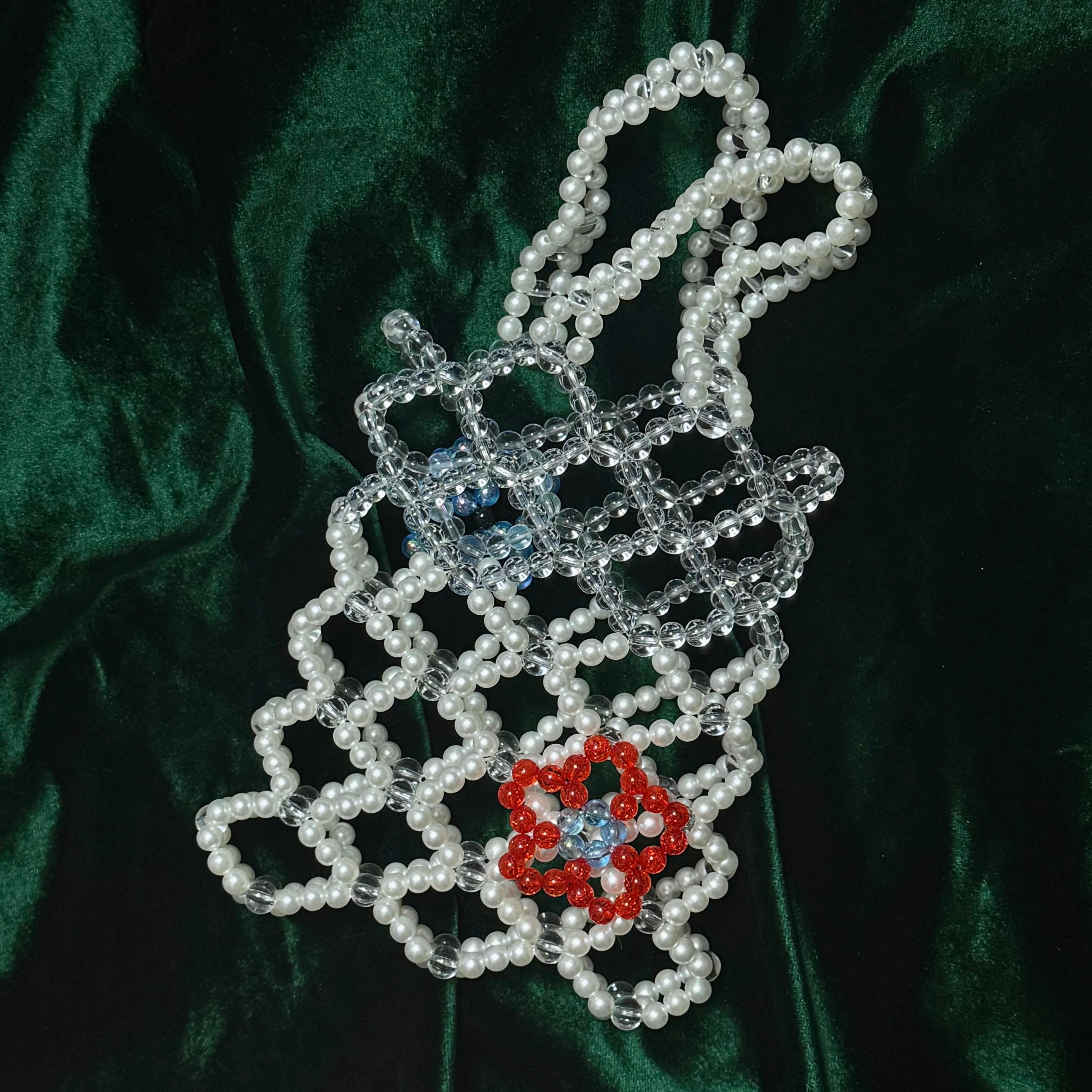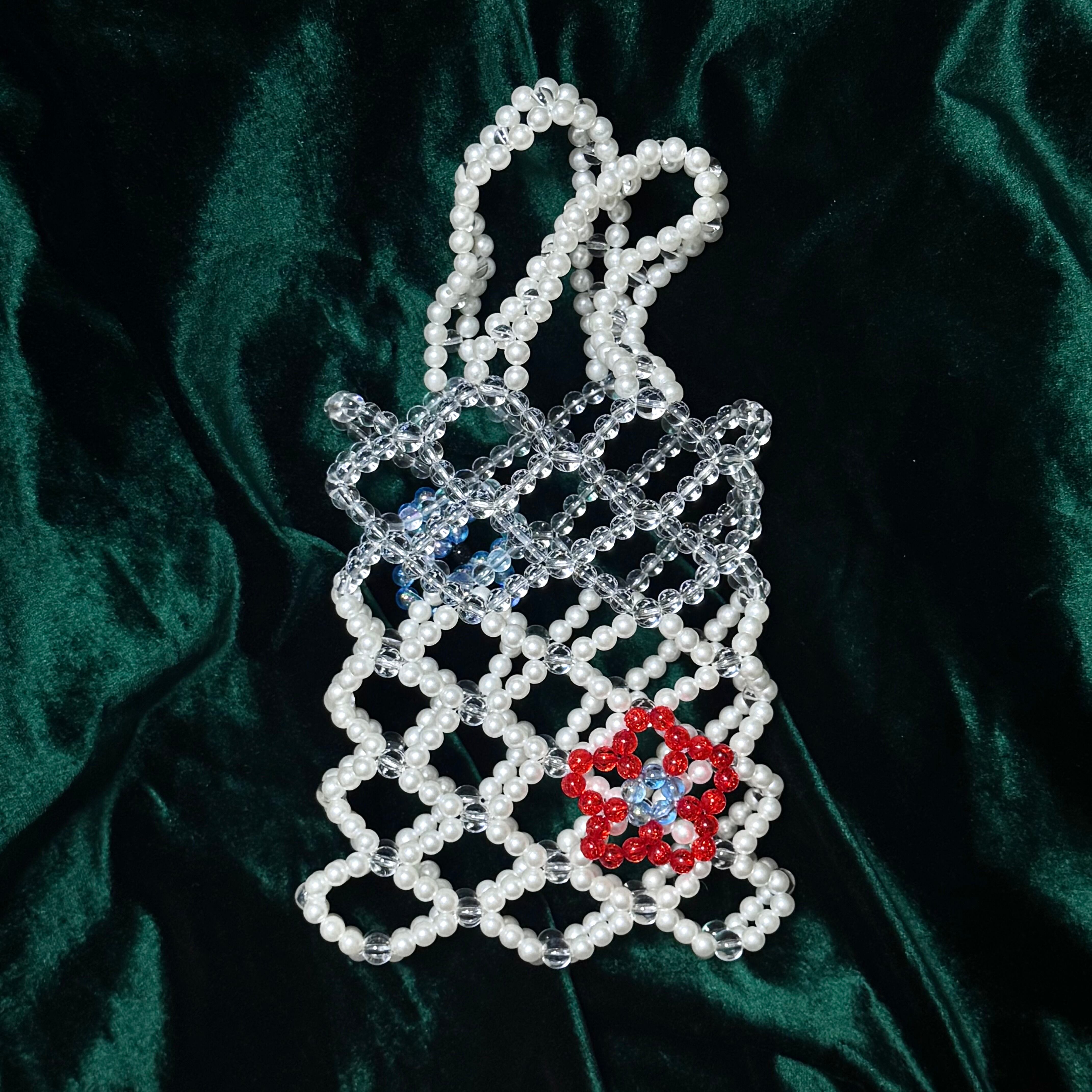 【flower gene】 縦:19cm 横:16cm 手持ち部分の長さ:24cm 素材:アクリルビーズ