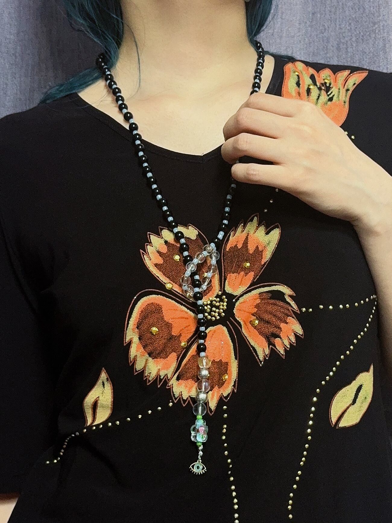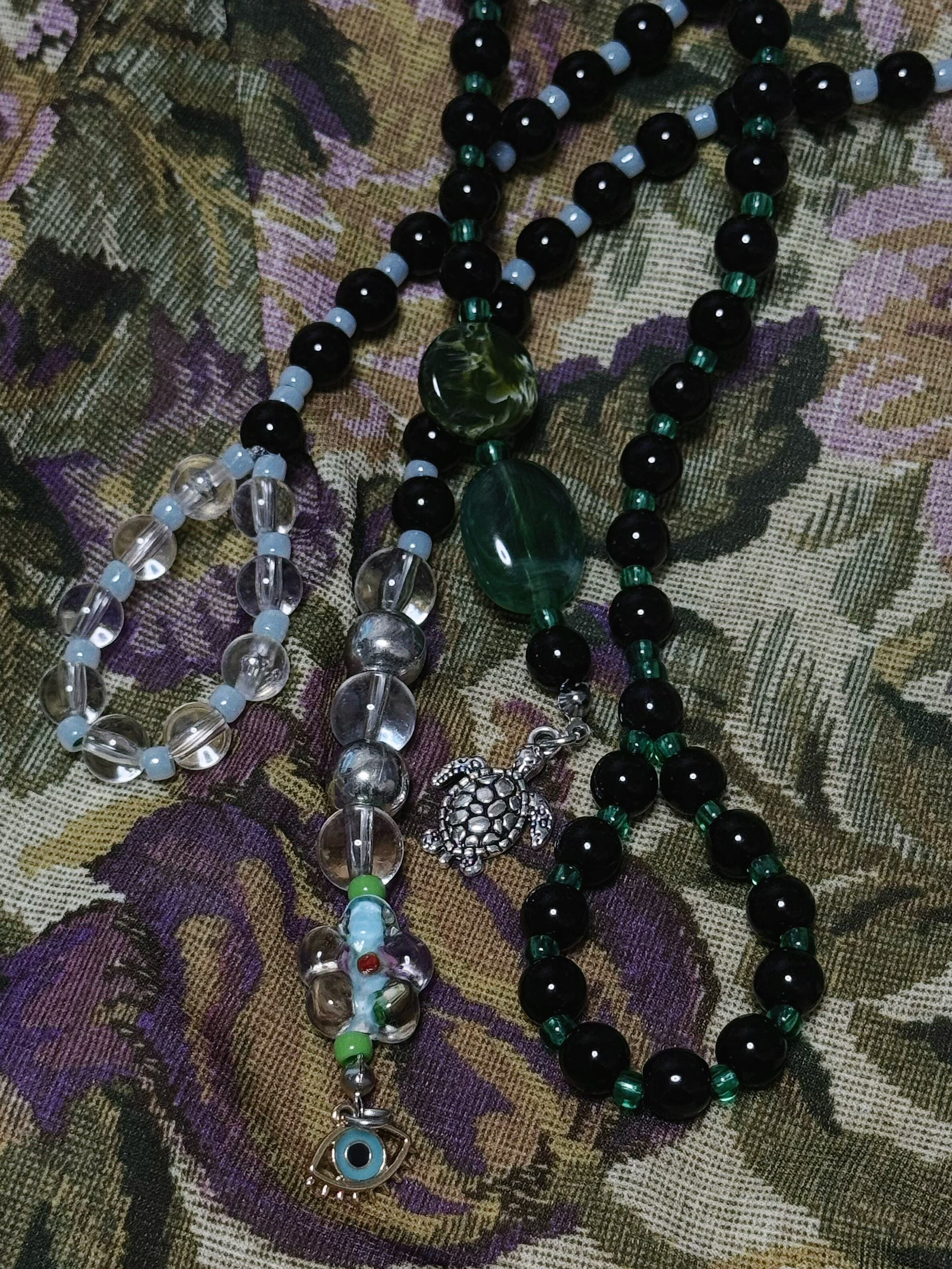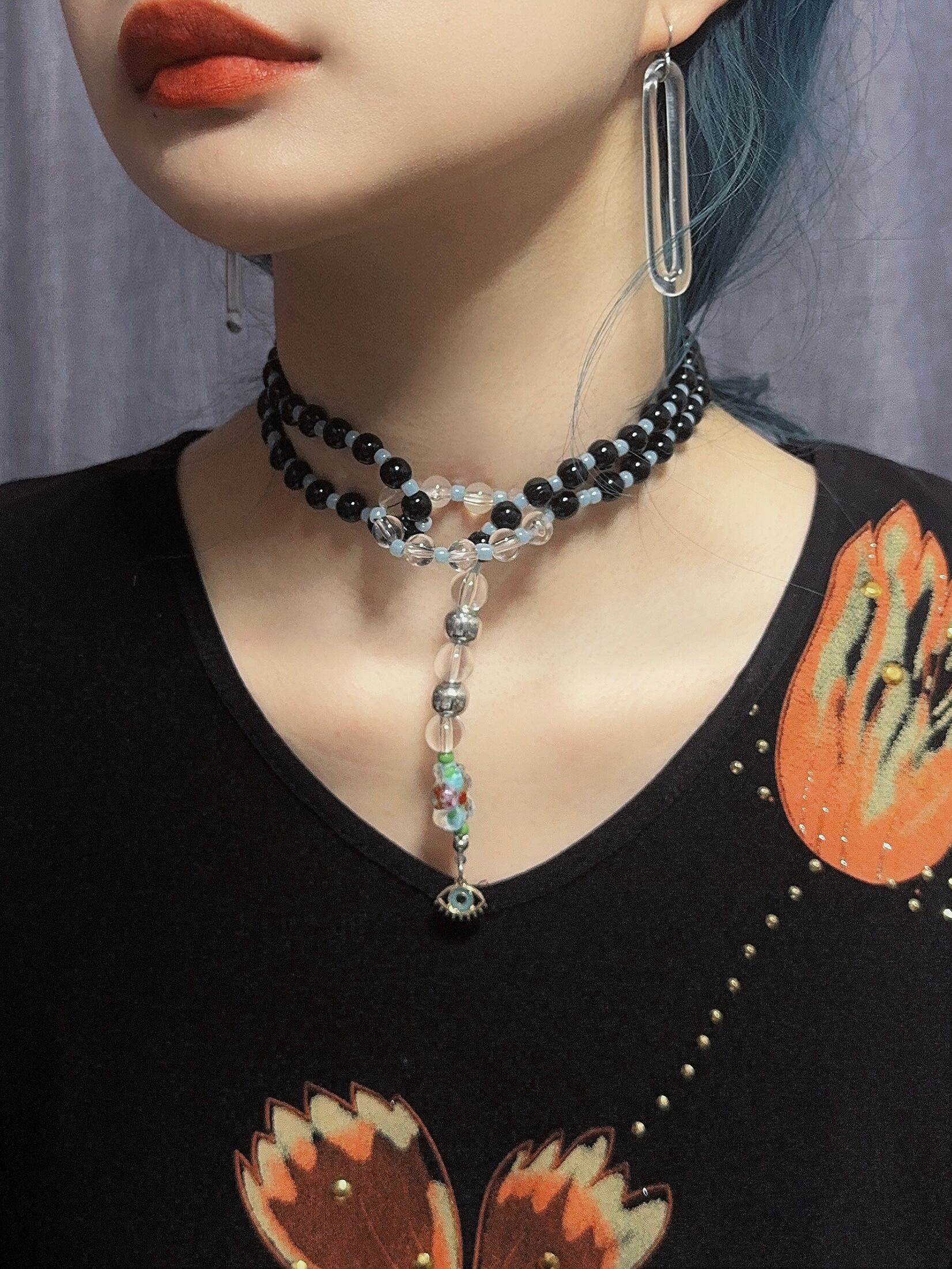 材質:アクリルビーズ、ガラスビーズ
