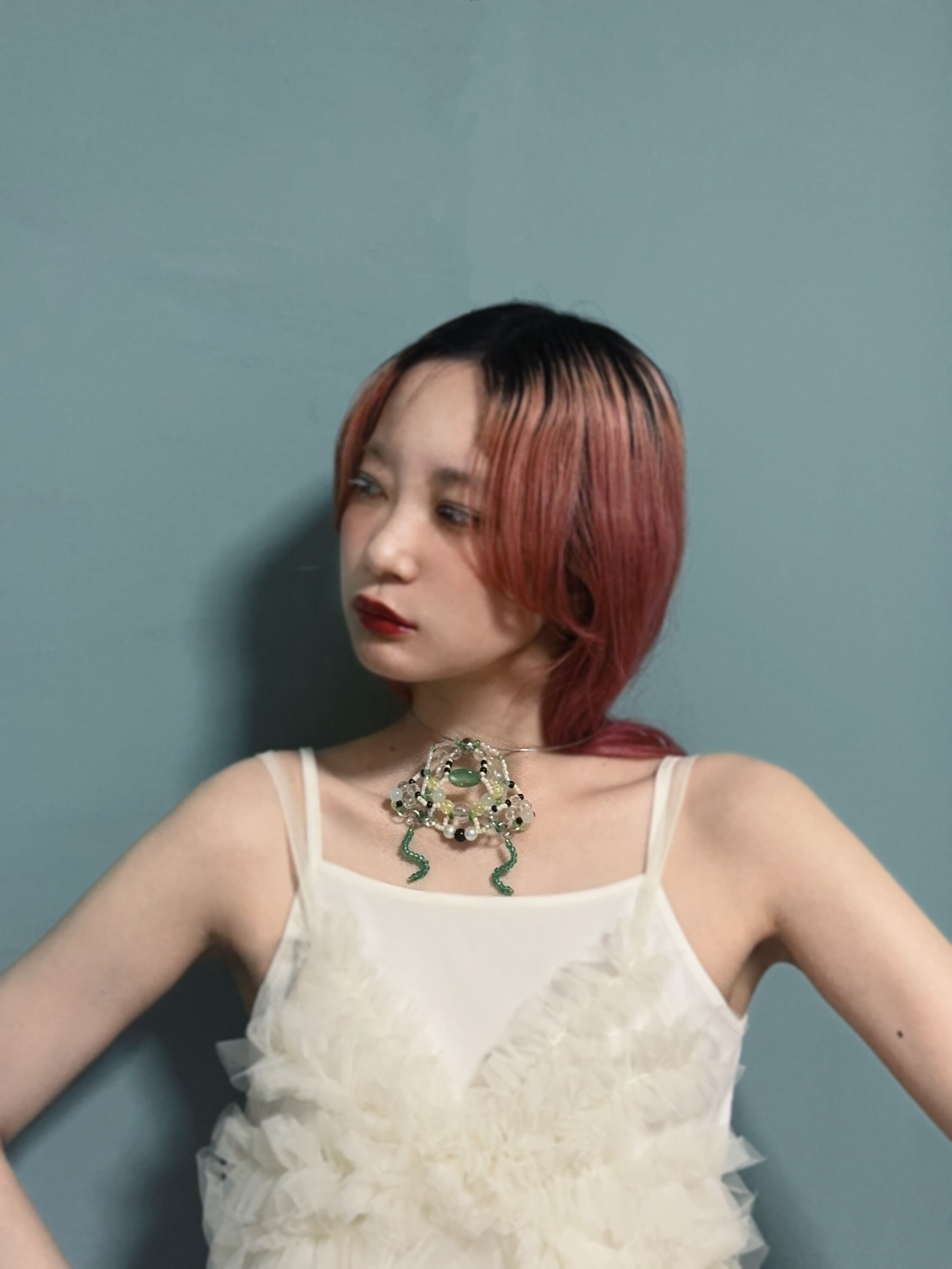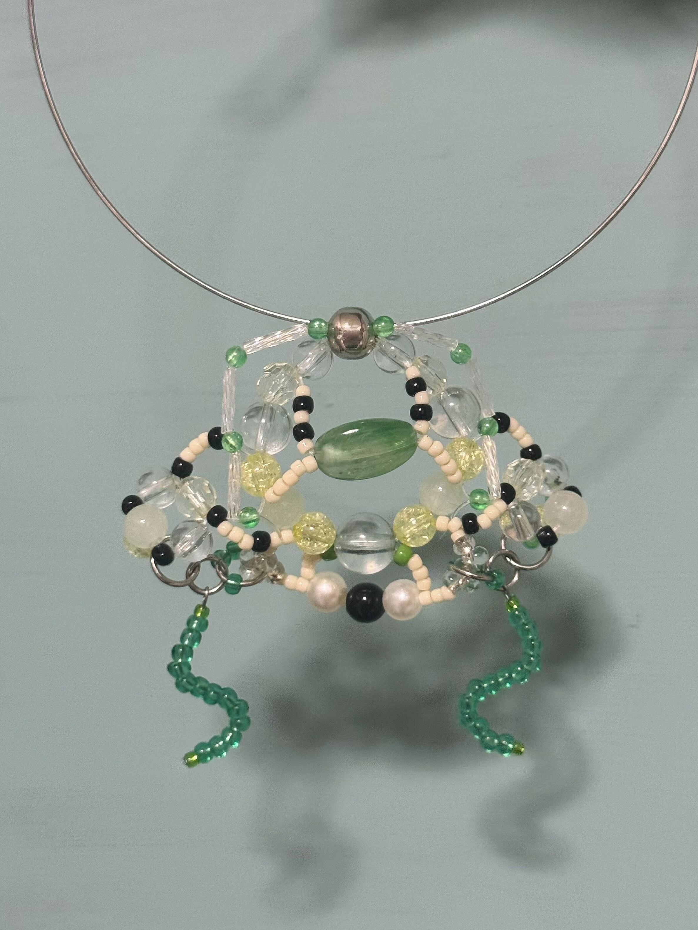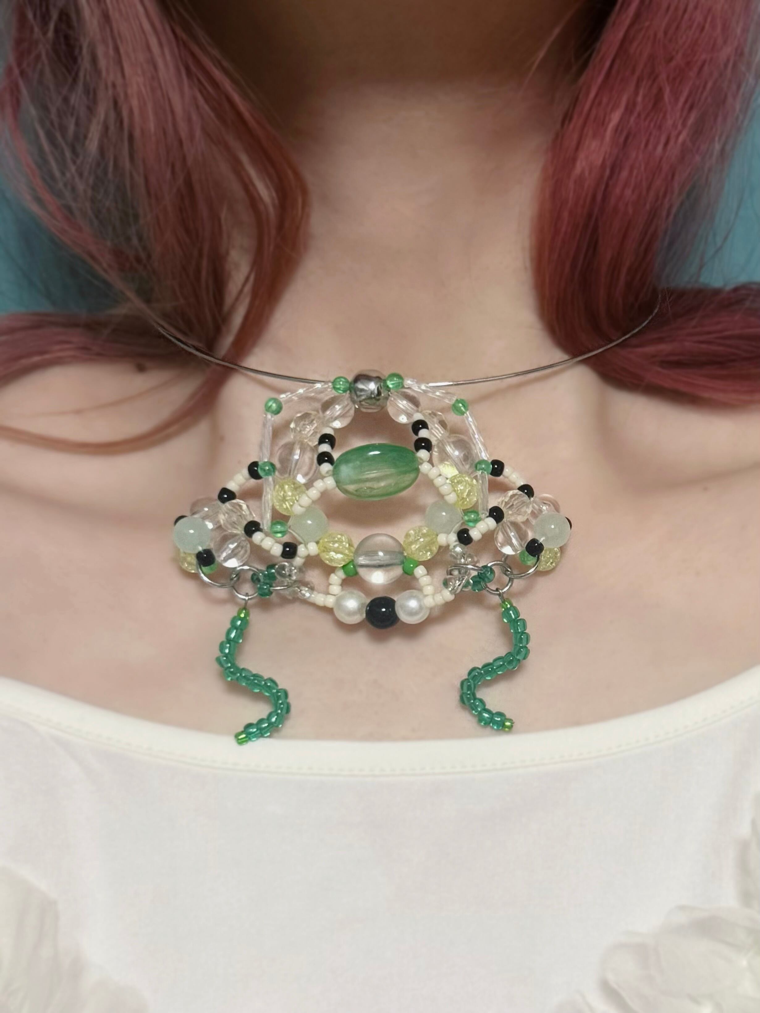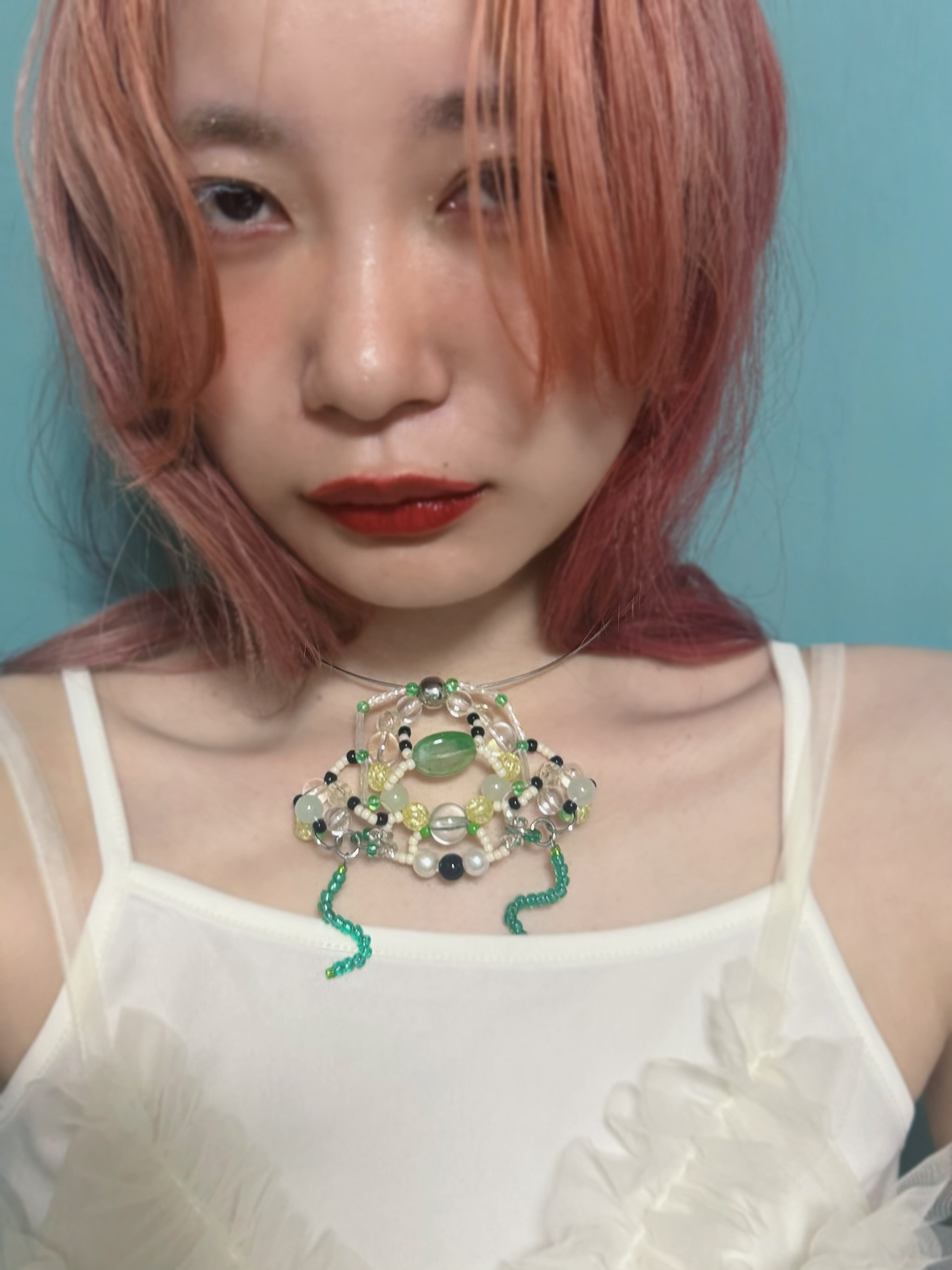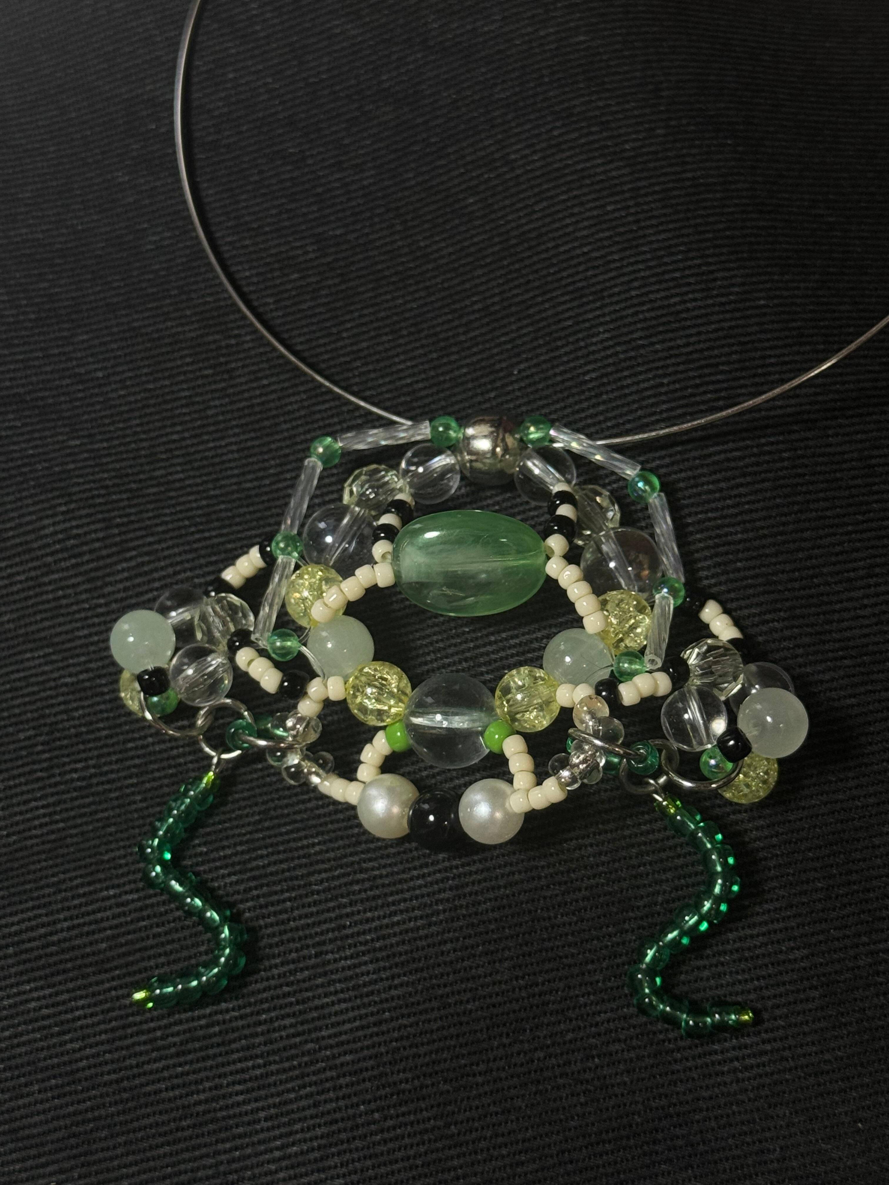 グリーンを基調とした色味で着けるだけで涼しげに。存在感のあるカエルさんはきっと身に着けてもらえる事を楽しみにしています♪