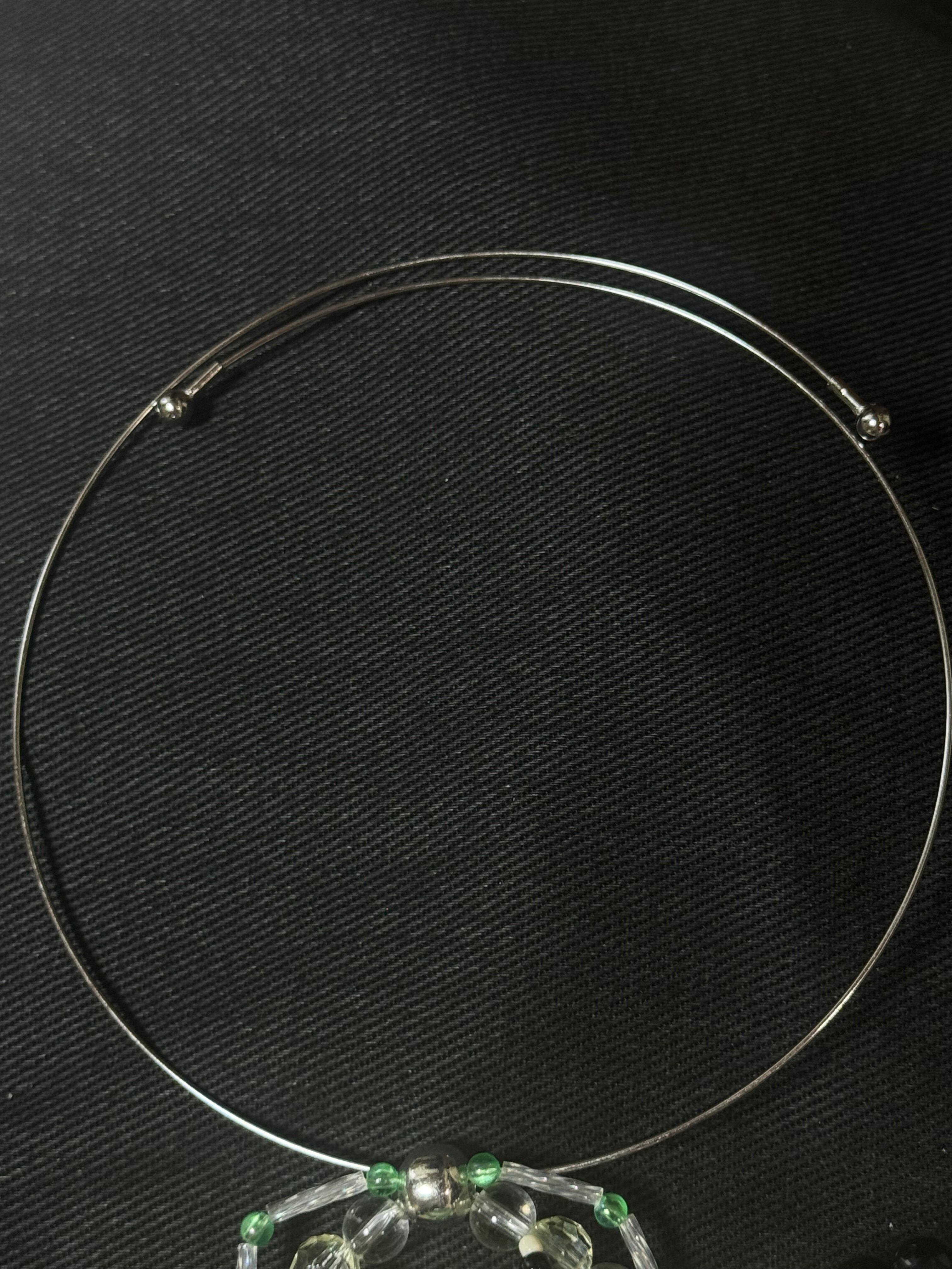 クリアのガラスビーズが水のような透明感を放つカエルさんがモチーフのフープチョーカー。