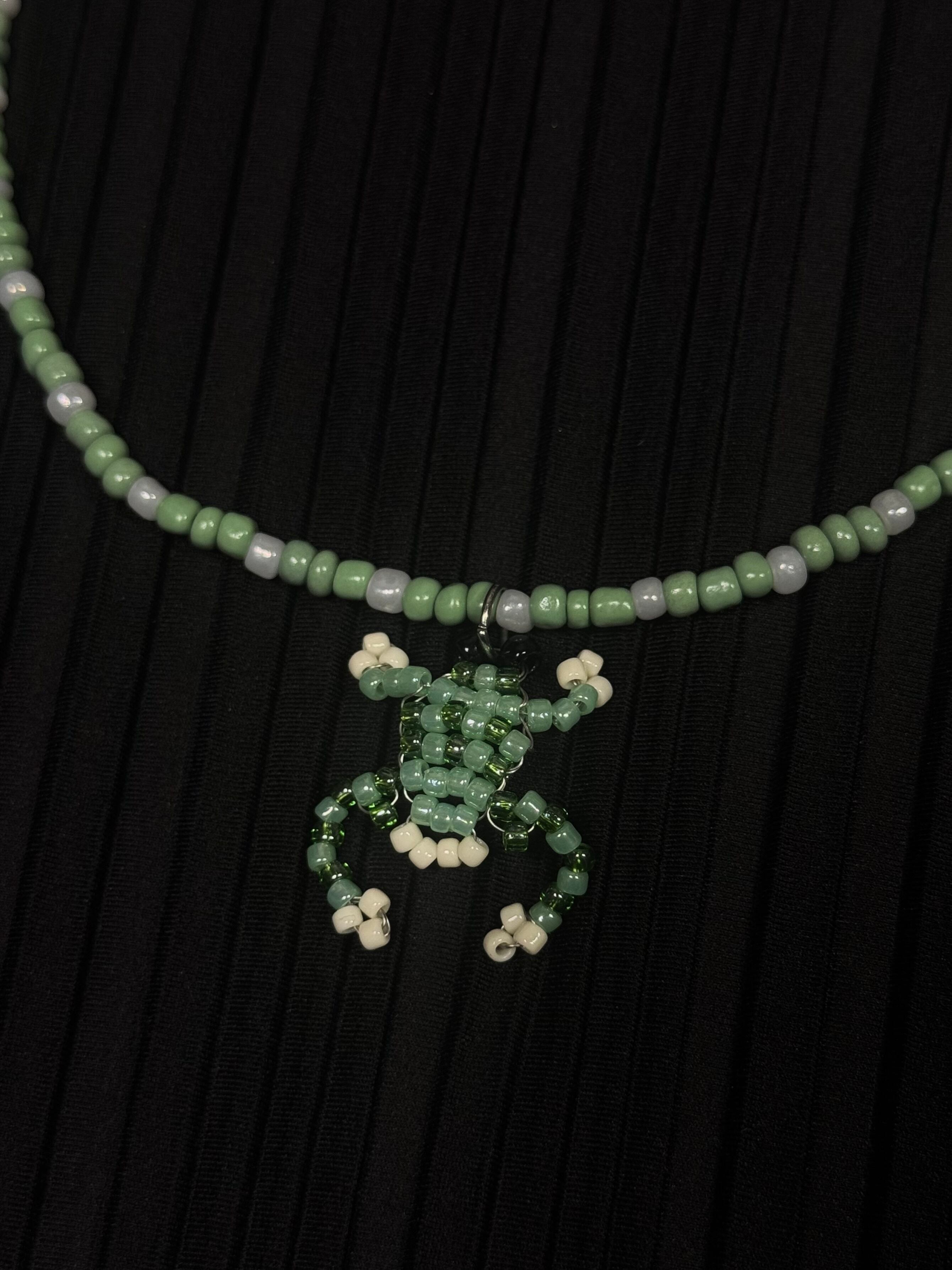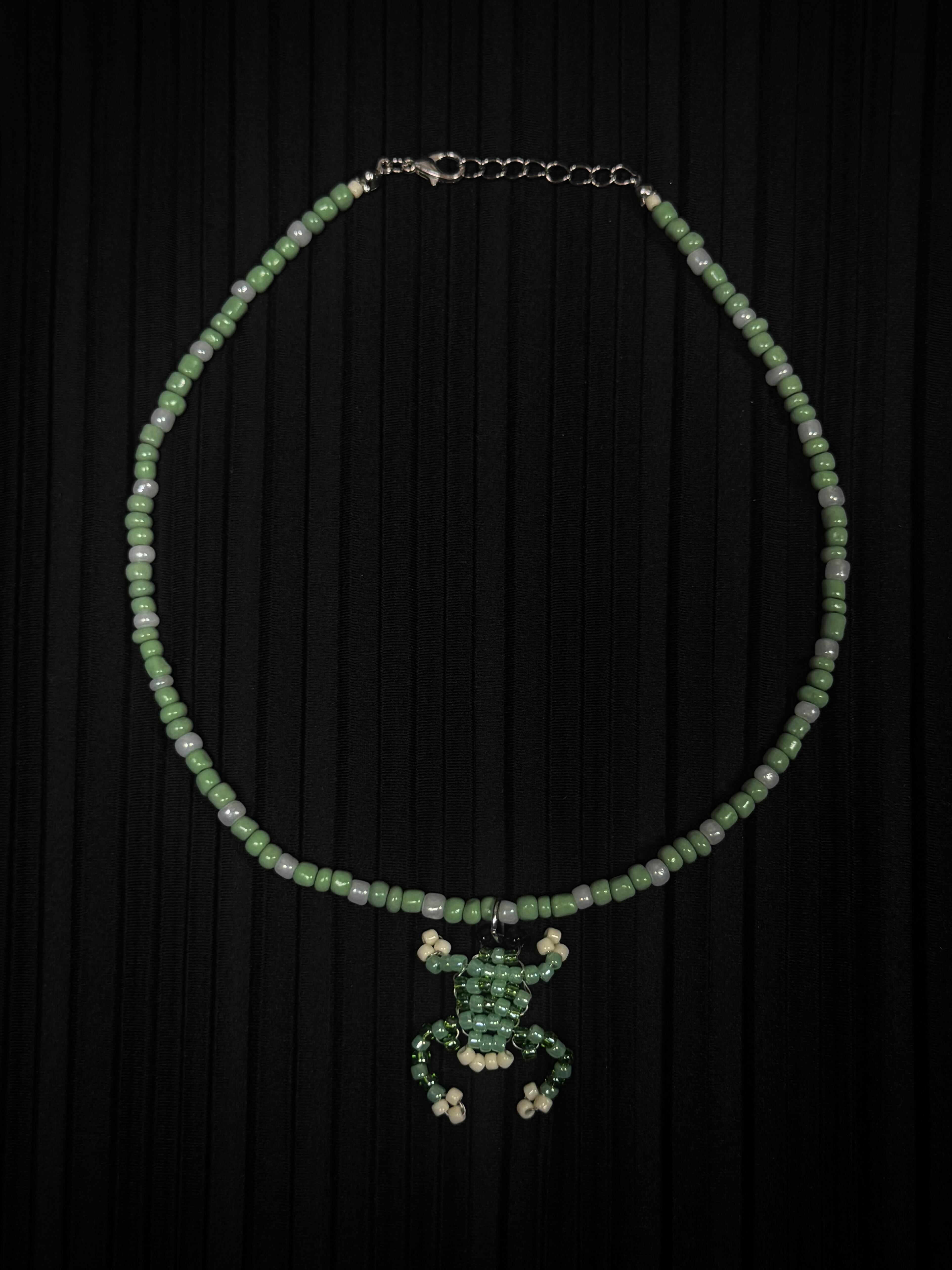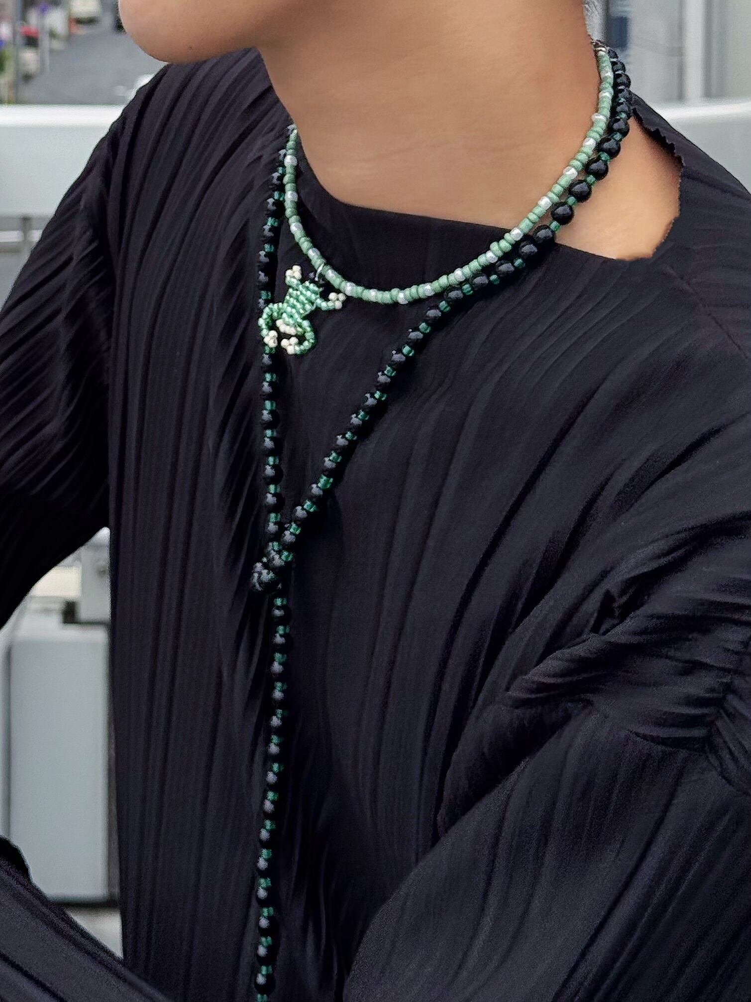 【baby frog】 全長:約41cm 素材:アクリルビーズ、真鍮、合金