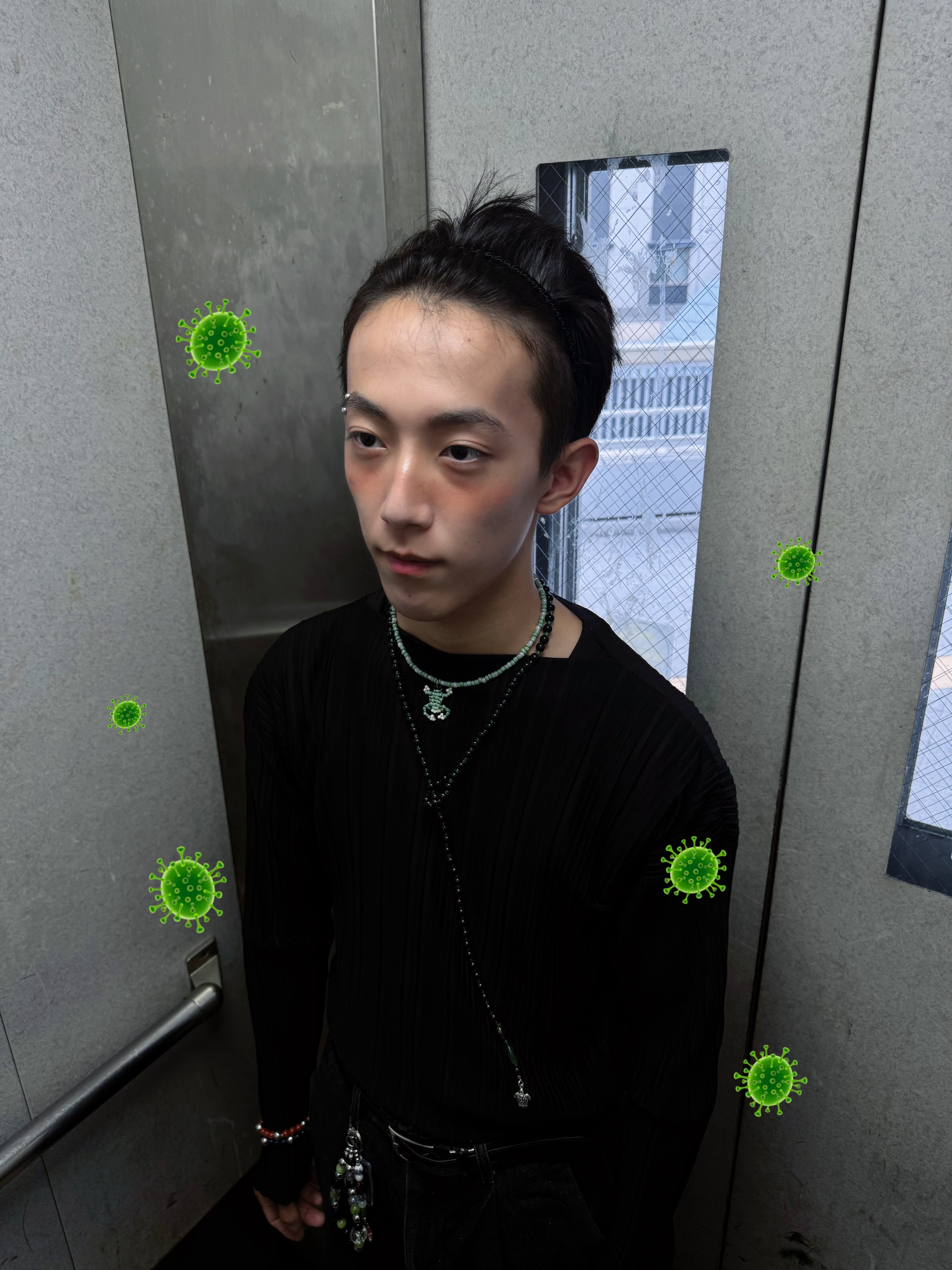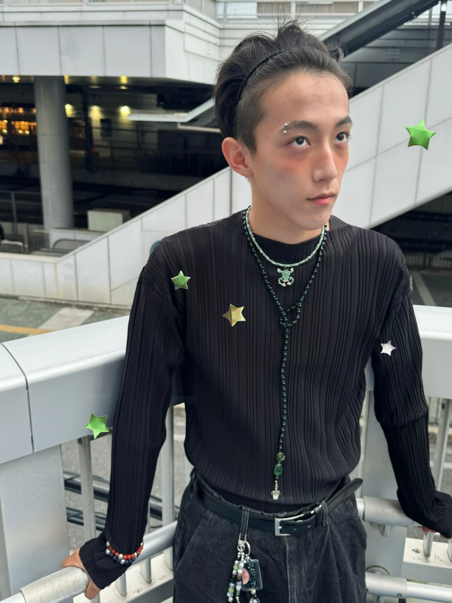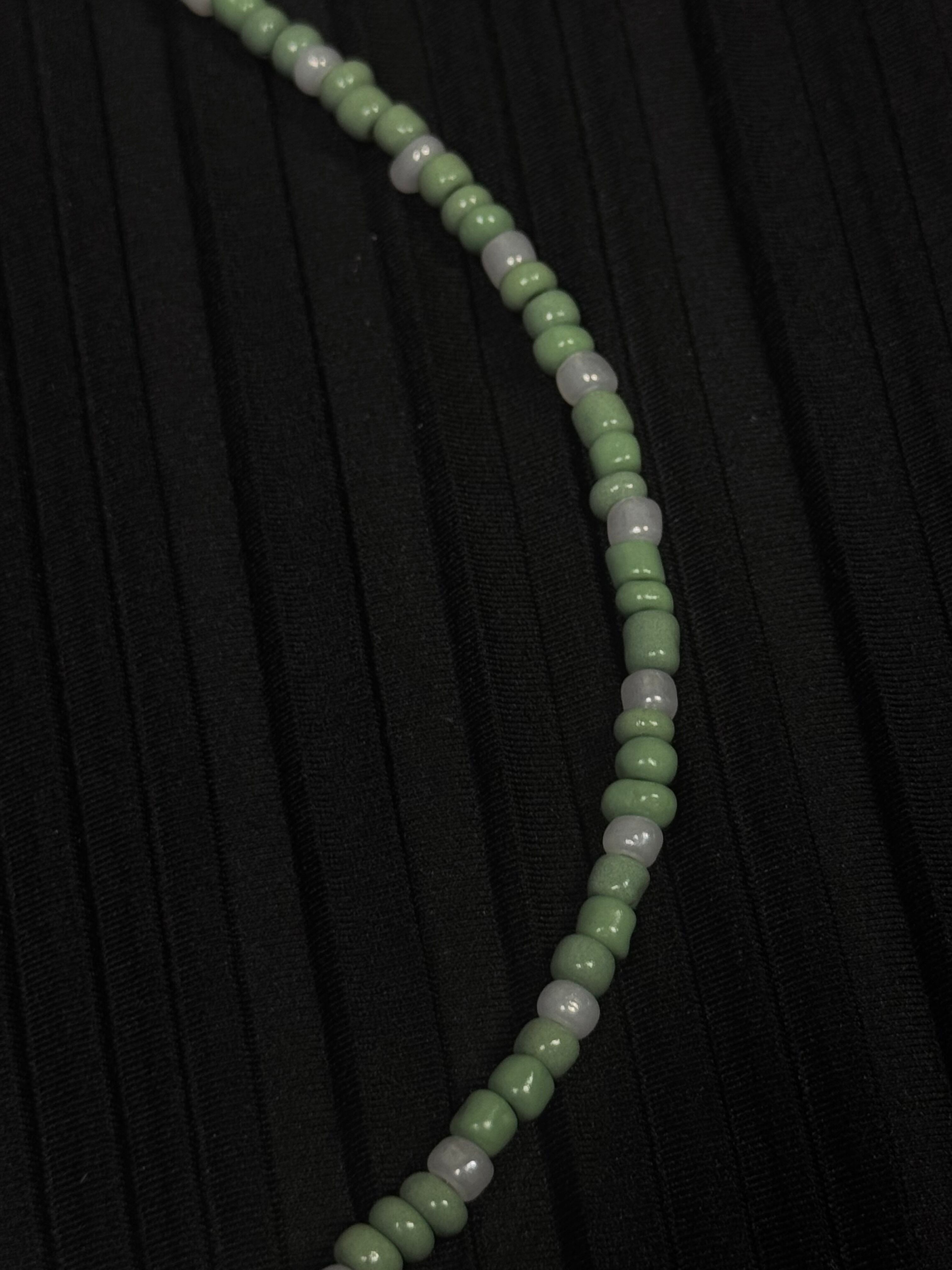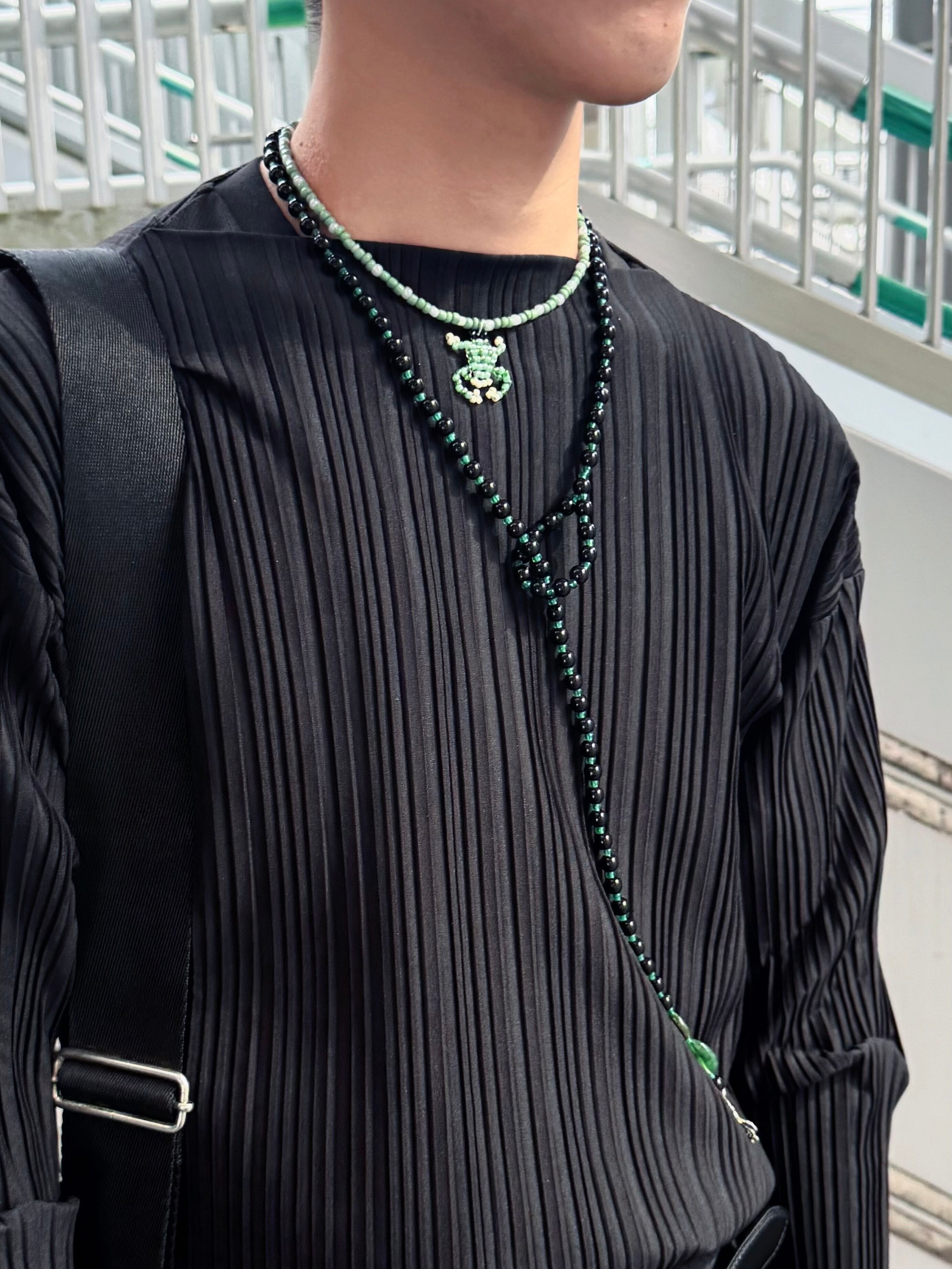 【baby frog】 全長:約41cm 素材:アクリルビーズ、真鍮、合金